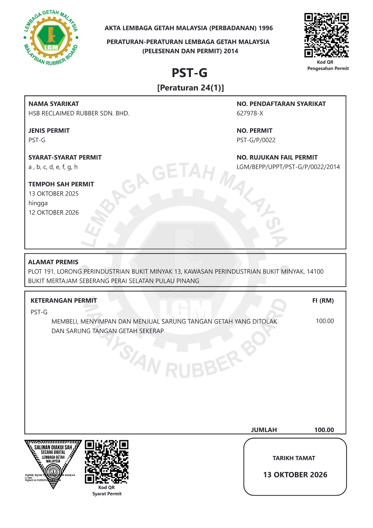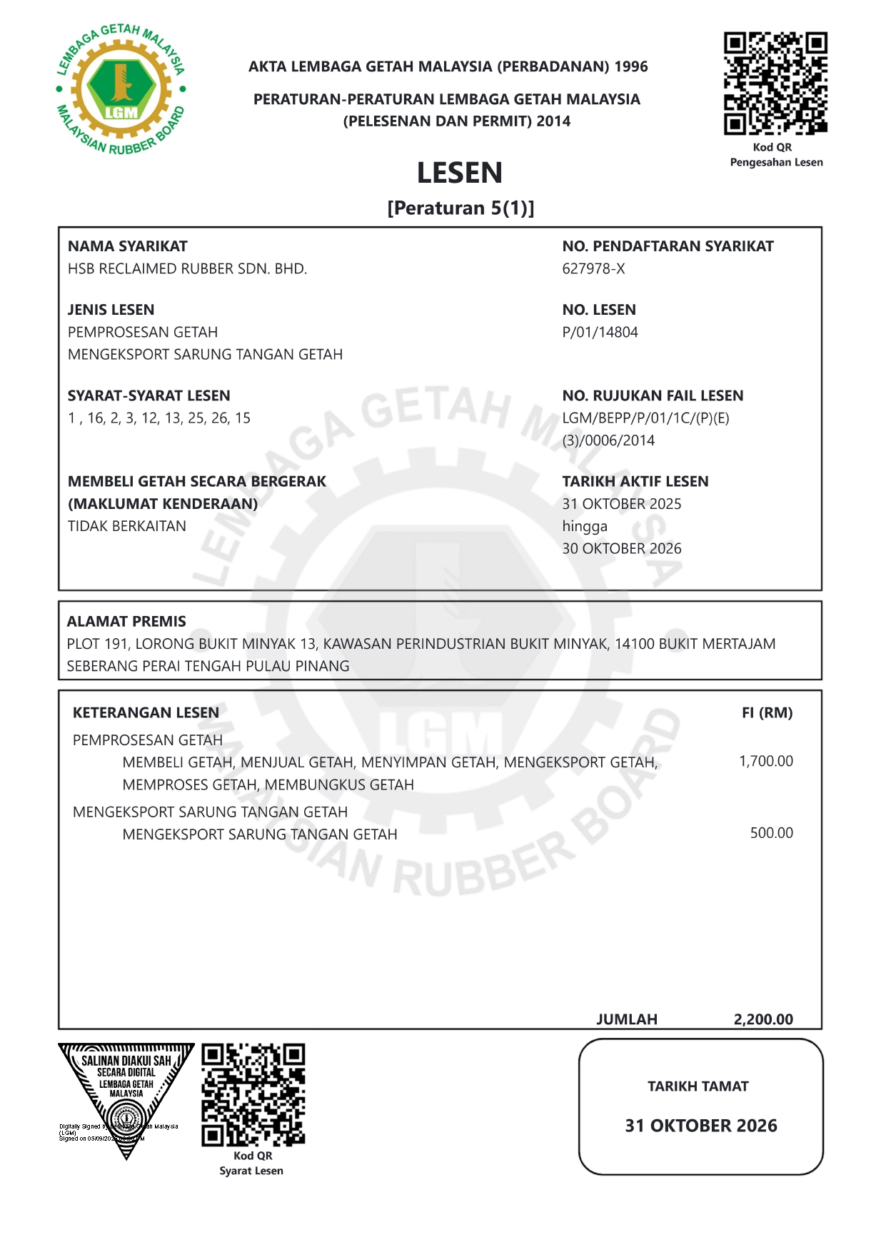 ISO 9001:2015 ISO 14001:2015 ISO 45001:2018 LICENSE LGM 31.10.25 – 30.10.26 LESEN 18-(1) LESEN 18-(1A) LGM PERMIT 13.10.25 – 12.10.26 MPSP